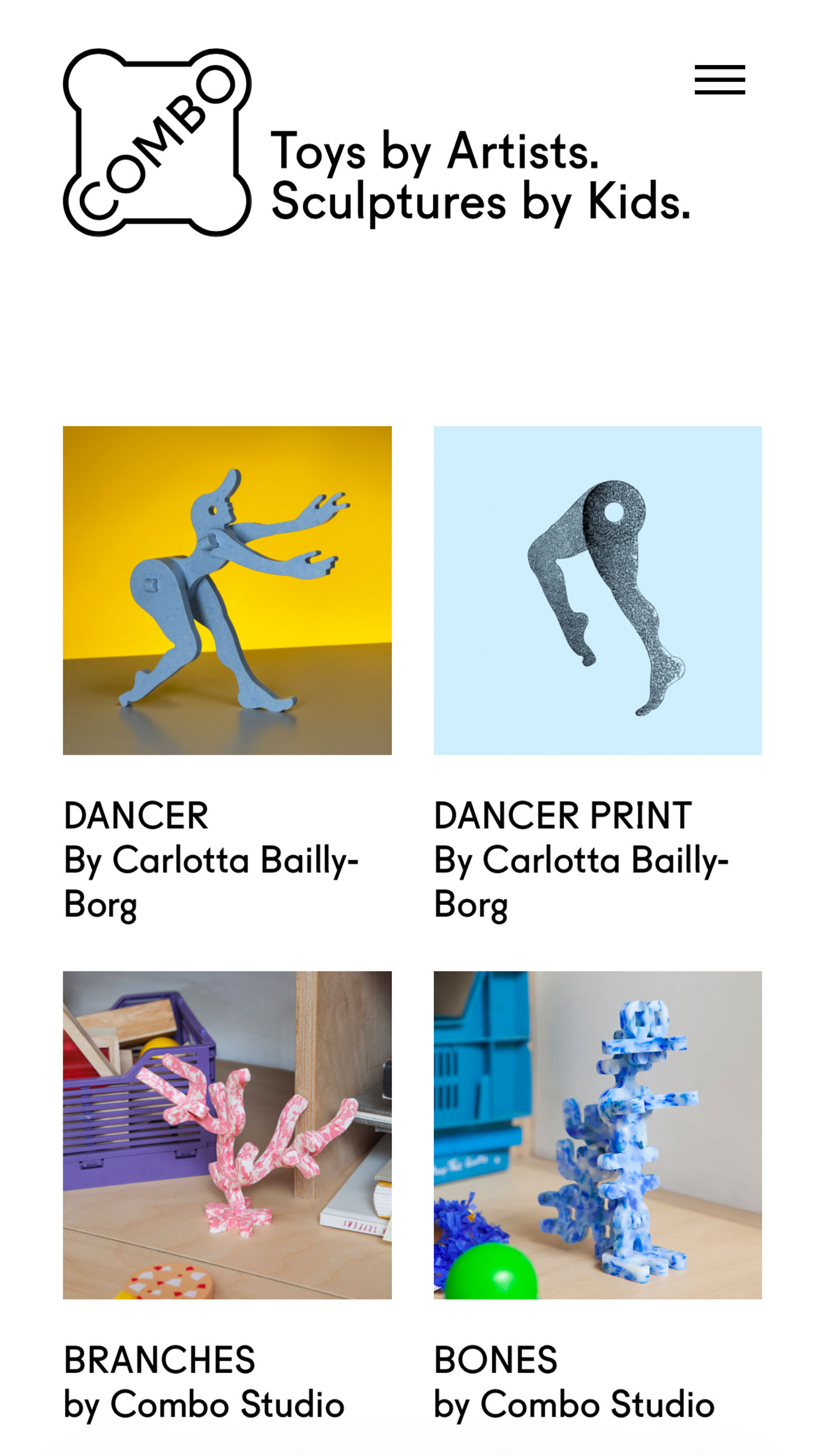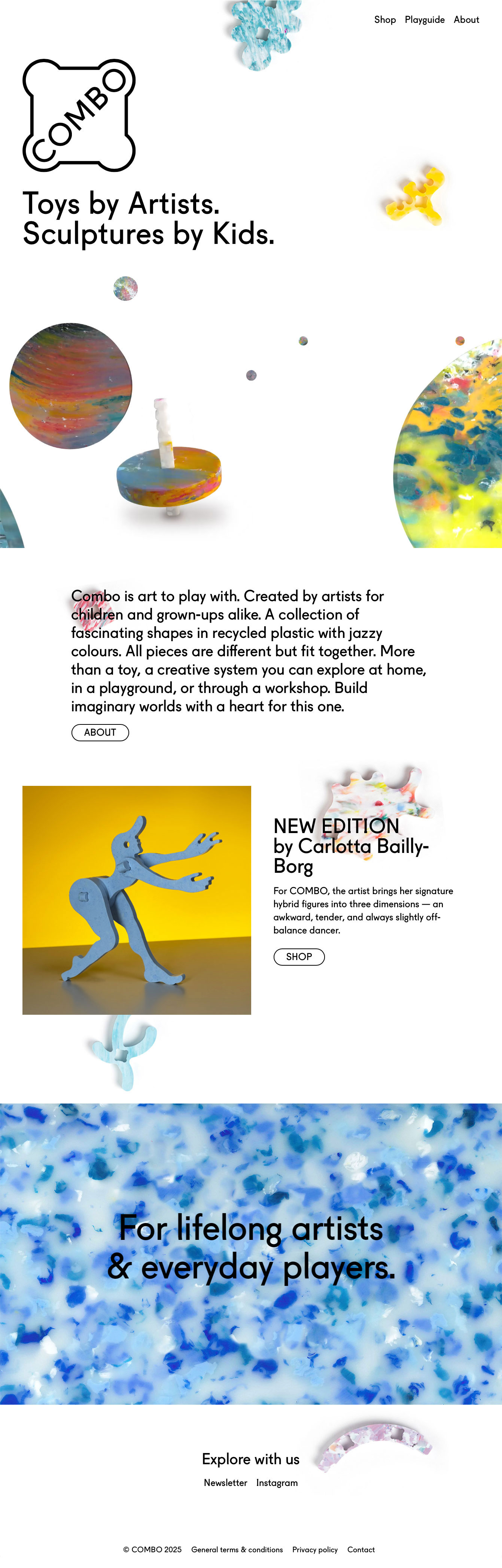 Combo offers children’s toys designed by contemporary artists. The project was initiated by David de Tscharner and Rebecca Cuglietta. With Grégoire Vanderheyden leading the art direction, I helped craft a playful website that not only allows visitors to purchase the toys but also explore the creative world behind them.