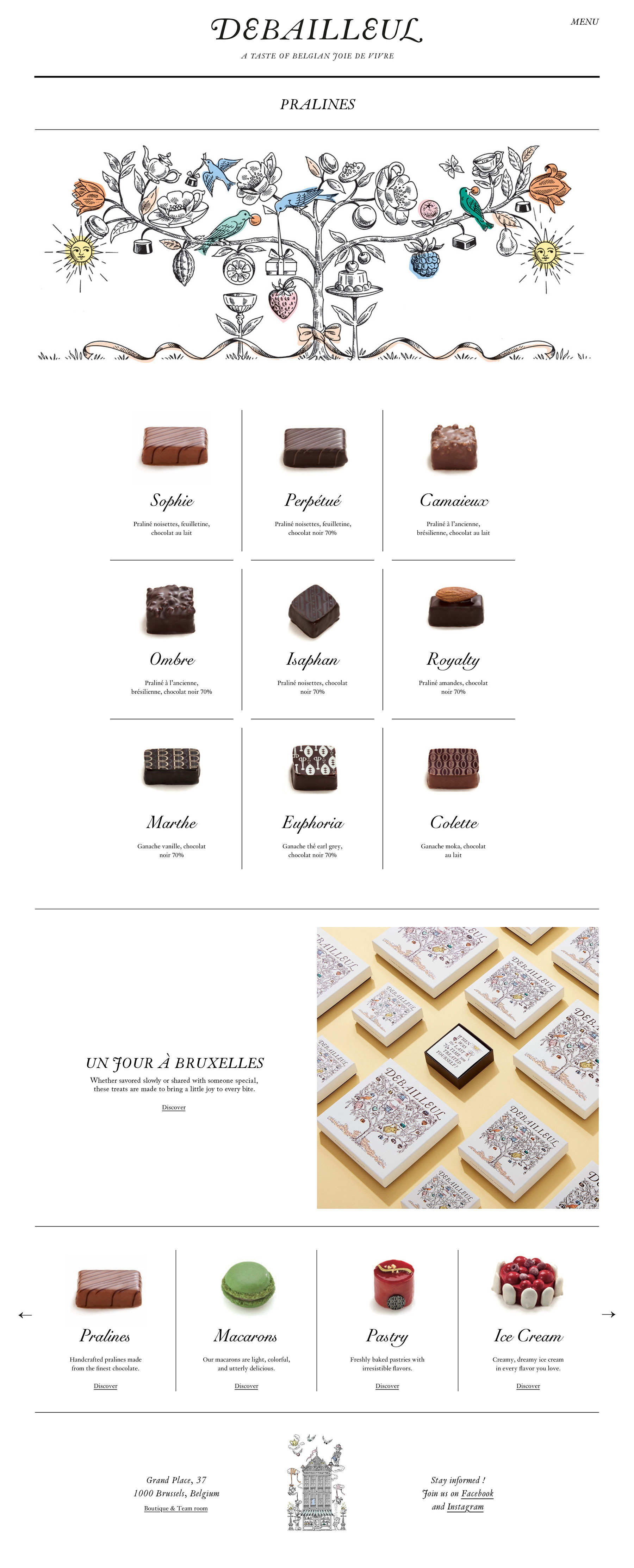 For the opening of their latest boutique on Brussels’ iconic Grand-Place, we created a website that lets visitors discover the new location as well as explore their catalogue of chocolates, macarons, pastries, and ice creams.