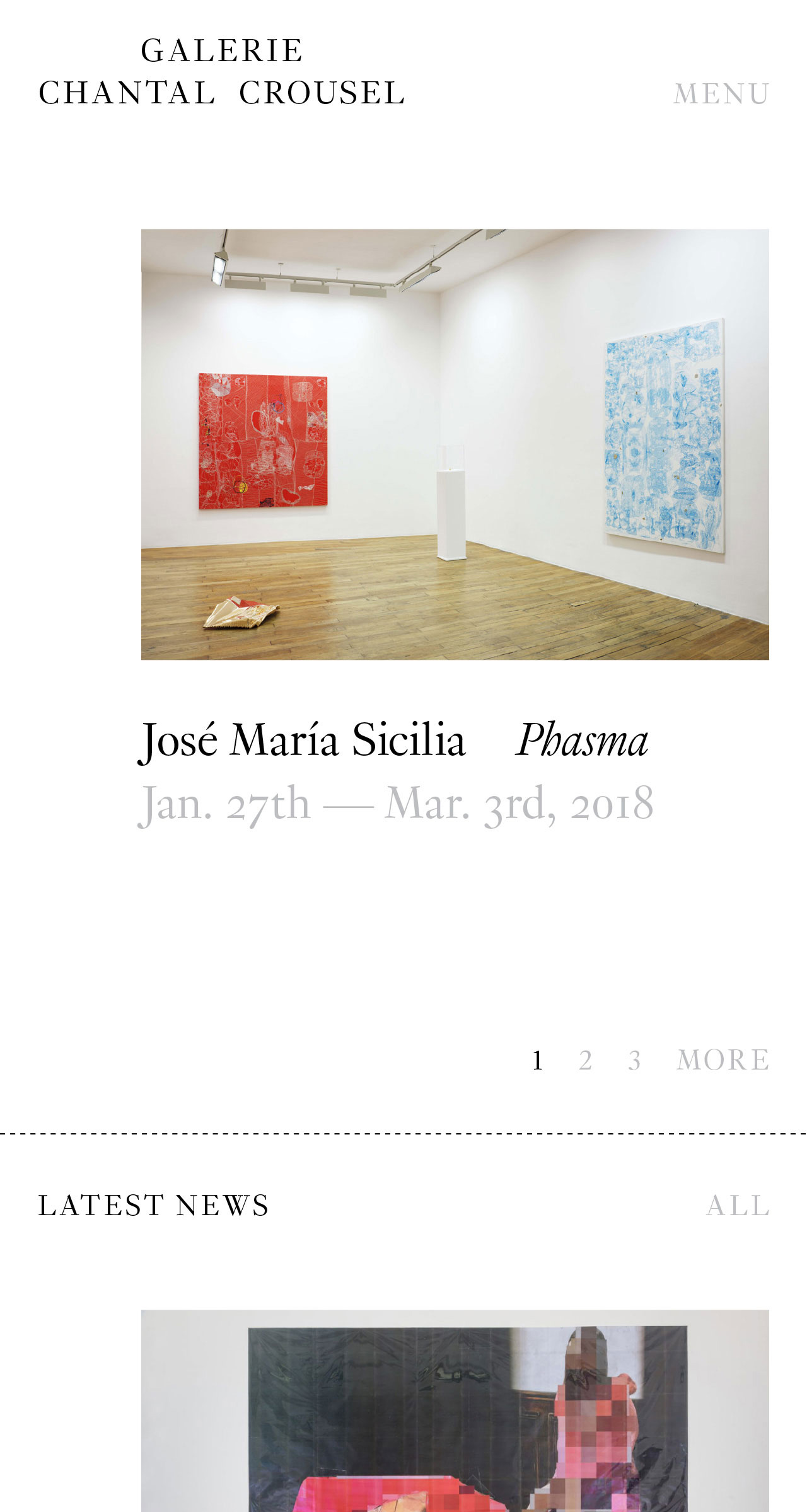 The Chantal Crousel Gallery is a contemporary art gallery in Paris, founded by Chantal Crousel in 1980. It represents international artists working across a wide variety of media and is one of the city’s most cutting-edge galleries.