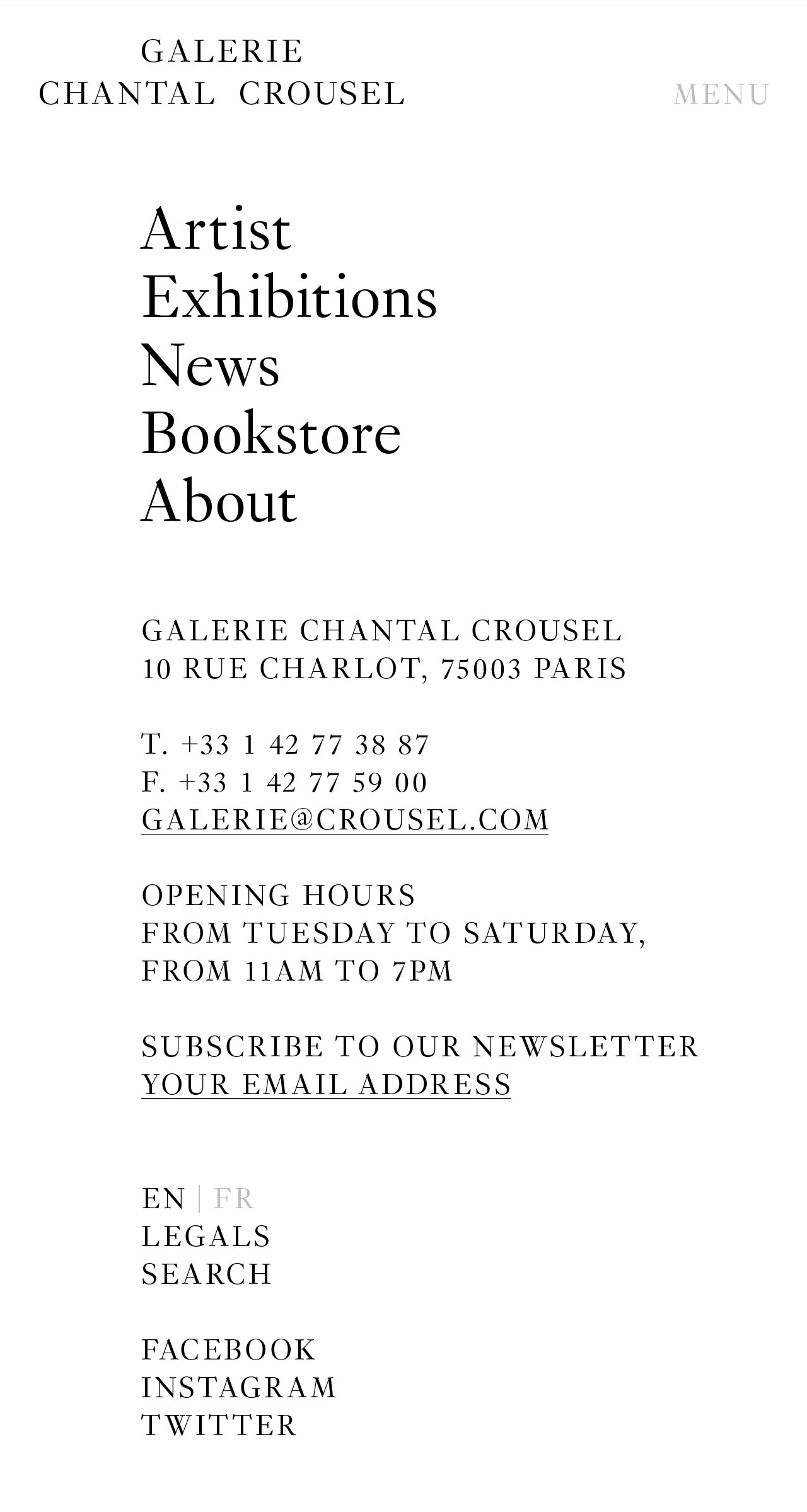 Website for an Art Gallery based in Paris