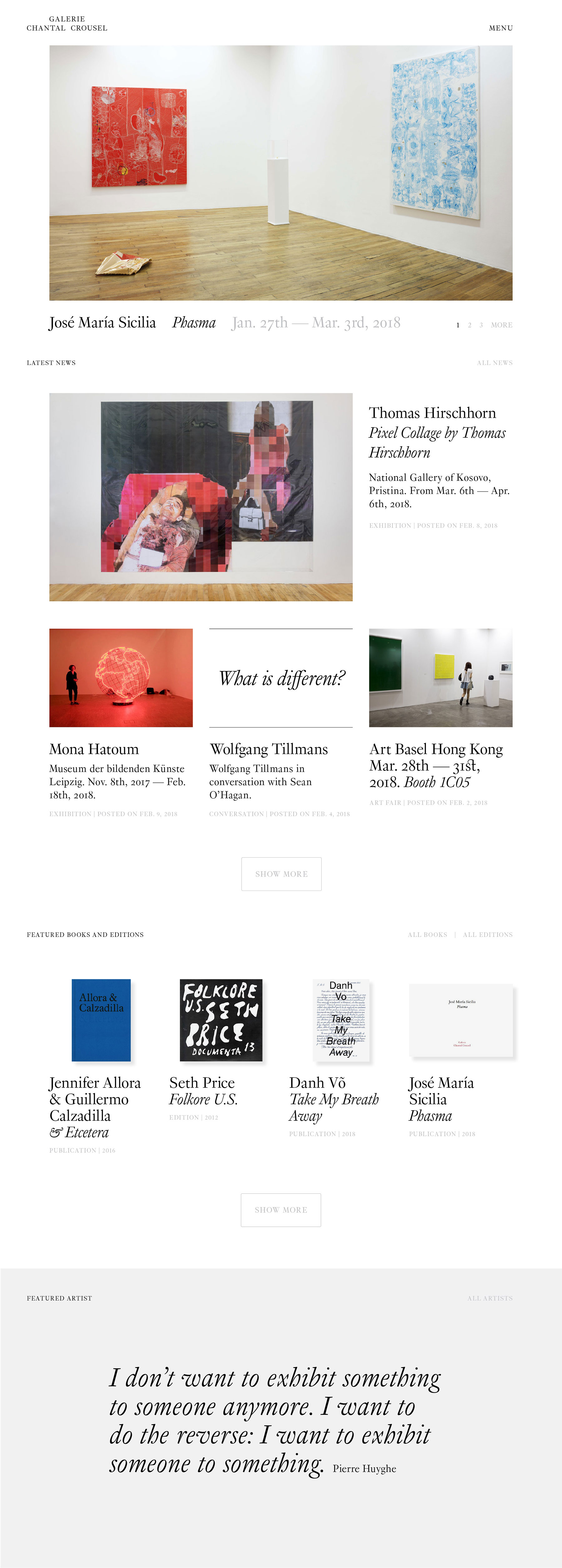 Art Director Arno Baudin (Zolo Press) and I teamed up to create a modern website that reflects the gallery’s iconic status. We handled the page designs and developed a functional prototype, while the final development was carried out by Out of Pluto.
